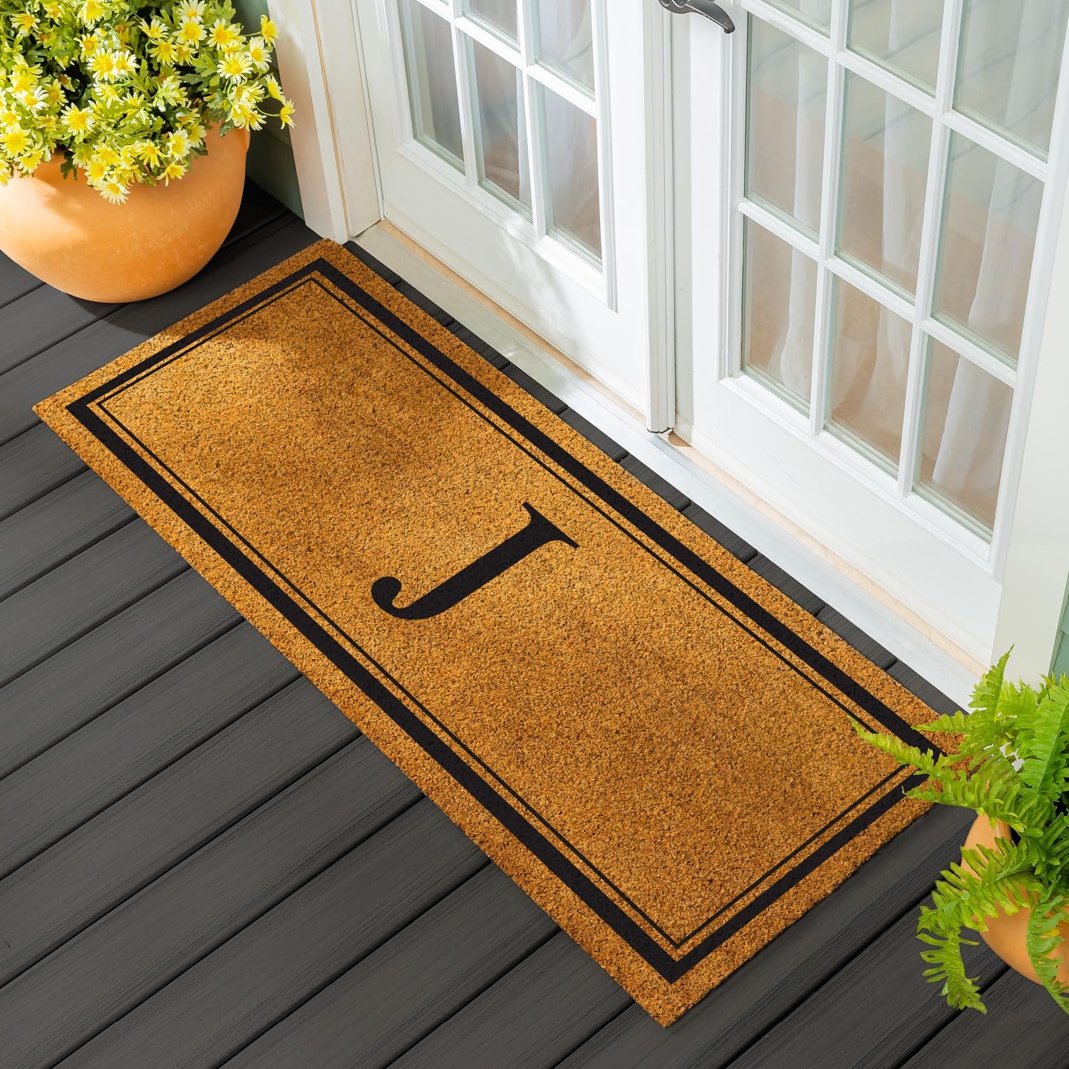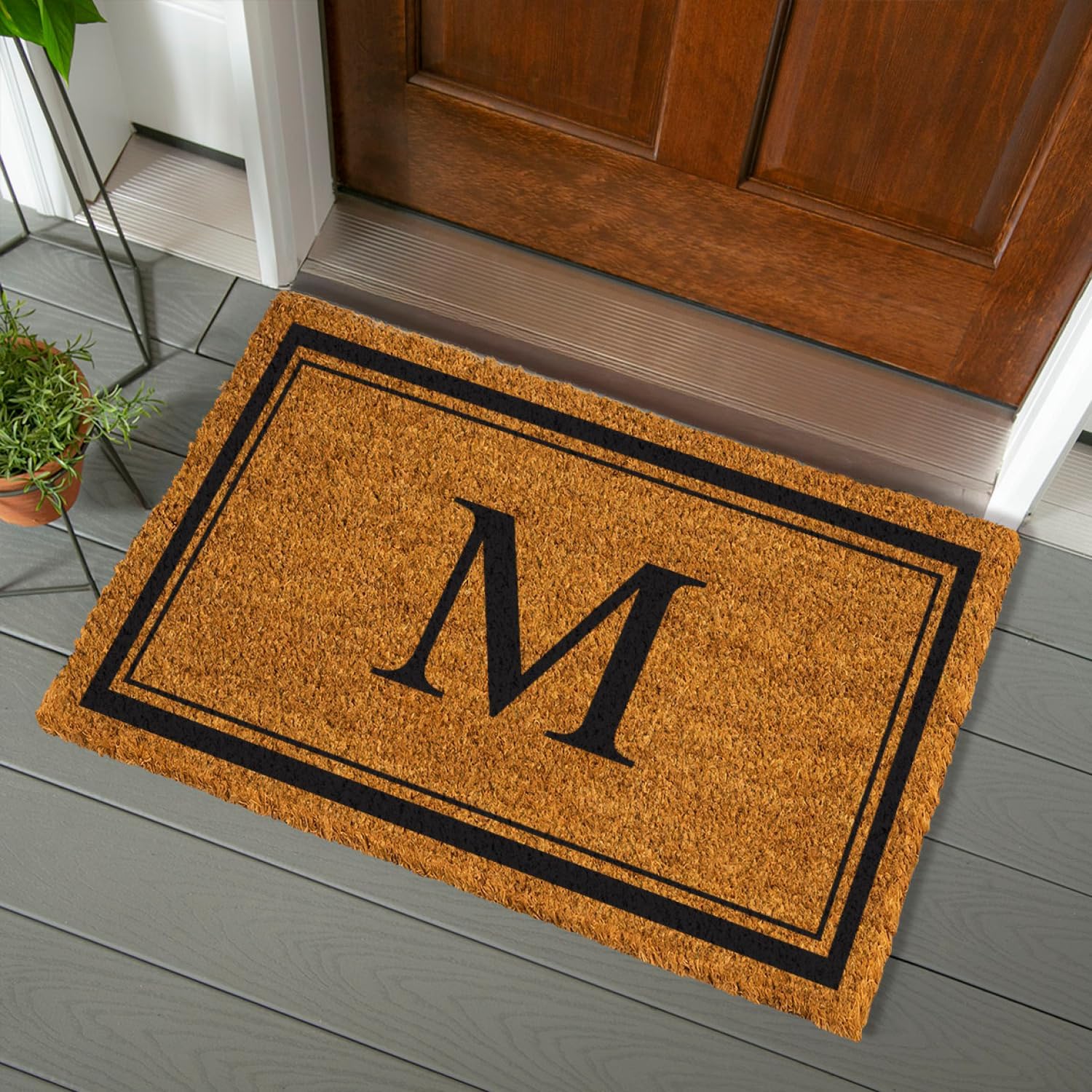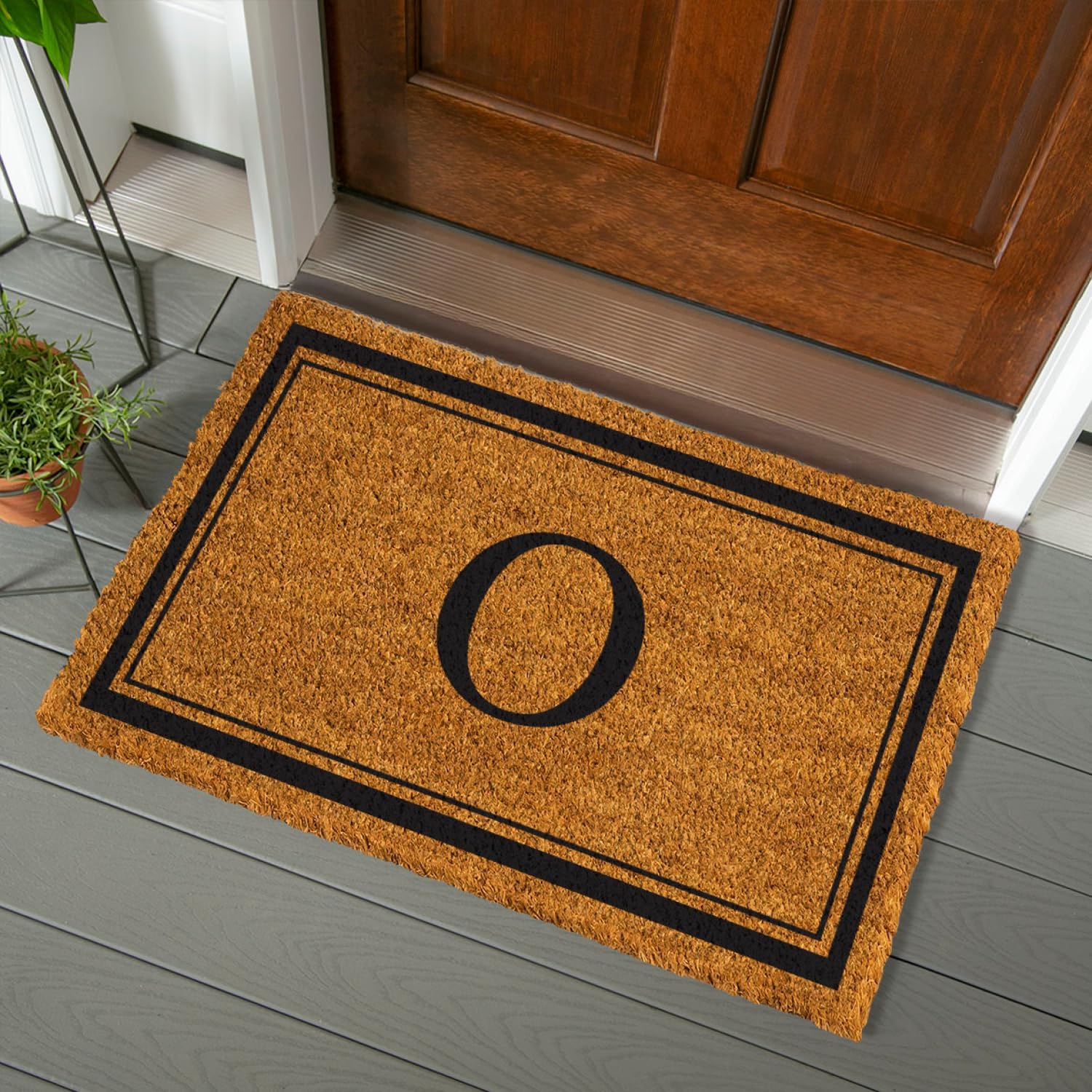 Greet family and friends in style with this monogram coir mat. This doormat is the perfect addition for families whose names start with that letter. Crafted from 100% natural coir fibers, this doormat is ultra-durable and naturally biodegradable. With a non-slip rubber backing that ensures this mat will stay in place. We use long coir fibers, which offer natural drainage holes, show less wear and tear, and increase the height of the mat. They are a full inch thick and stay in place without additional backing. To prevent fading, we recommend displaying the mat in a sheltered area when possible. For the best results, do not let the mat sit in standing water. Cannot be used in conjunction with any of our mat trays.