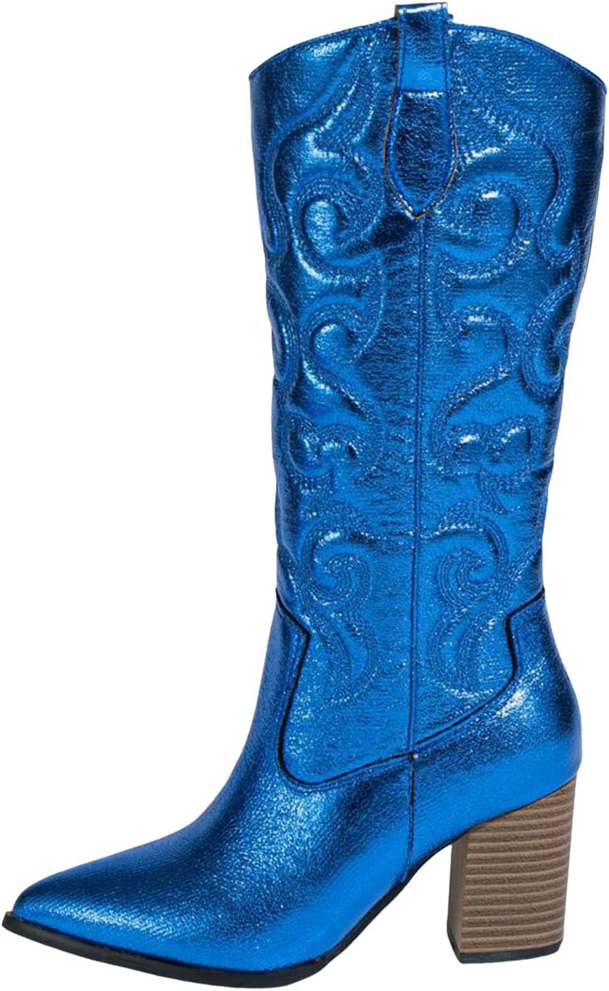 Western Boots With Thick Sponge, Soft Embroidered Flowers, Pointed Toe, Thick Heel, High Heels, Plus Size Boots, EthnicLarge Size Boots With Embroidered Fashion, Thick Heels, Women's High-heeled BootsGender: Women,GirlUpper Material:PUScenes:Perfect for a show, dance, date, nightclub, casual or other .Shaft height: 28.5cm/11.22InchesShoes Heel High:8.5cm/3.35''Package:1 Pair Women ShoesNOTE:The Size will be smaller due to concave design , We suggest you select the appropriate size according to your foot length.